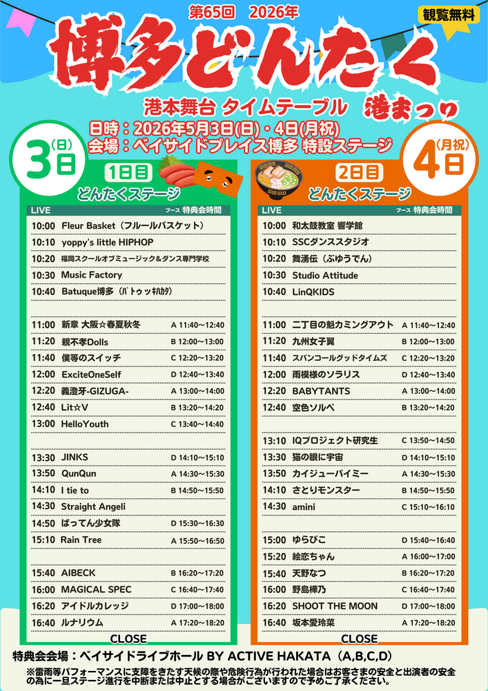 第65回 2026年 博多どんたく港まつり港本舞台